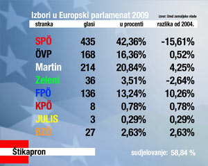 Nedilju, 7. juna 2009. ljeta je Austrija birala svojih 17 zastupnikov u novom Europskom parlamentu. Prve rezultate izborov u općini vidite na zdolnjoj grafiki.