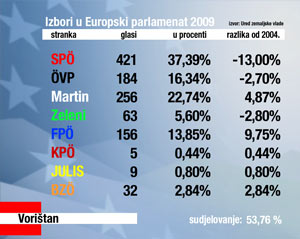 Nedilju, 7. juna 2009. ljeta je Austrija birala svojih 17 zastupnikov u novom Europskom parlamentu. Prve rezultate izborov u općini vidite na zdolnjoj grafiki.