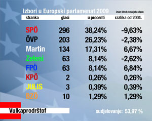 Nedilju, 7. juna 2009. ljeta je Austrija birala svojih 17 zastupnikov u novom Europskom parlamentu. Prve rezultate izborov u općini vidite na zdolnjoj grafiki.