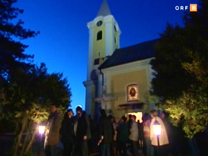 Čuvar hodočasne crikve u Celju, pater Schauer i organizator hrvatskoga shodišća u Celju, kanonik Krojer su čer navečer bili glavni celebranti u Čunovu, kade je sada ljetodan dugo Putujuća celjanska Marija.